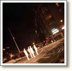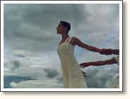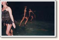 A dance performance for four dancers at the east coast of south Sweden. The dancers are wrapped up in costumes made out of safety pins. A soundscape with noises from the city alienate the setting of the natural environment. The cyberspace figure is covered with more than 22.000 safety pins. The costume weighs 10 kilos.